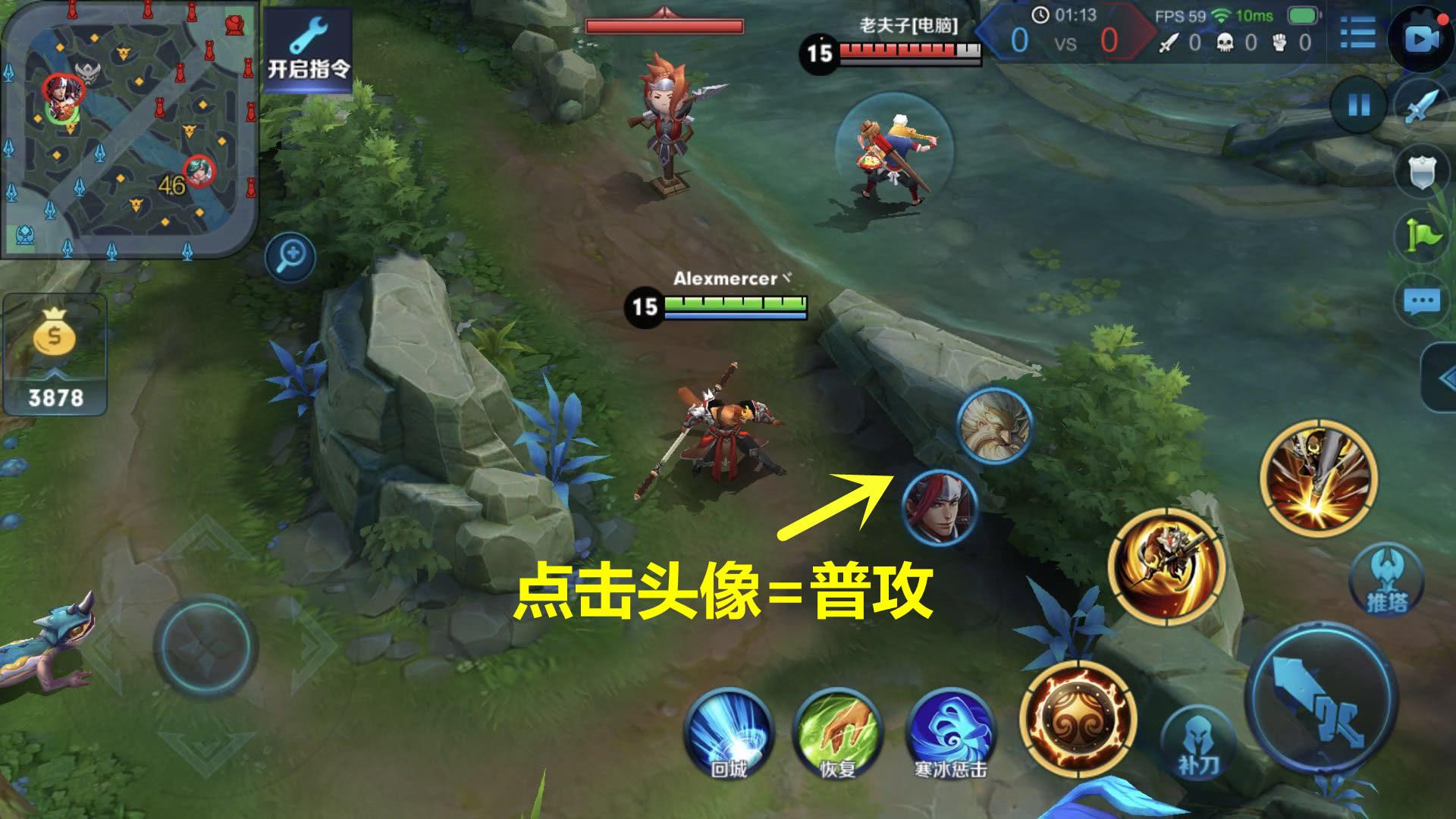 点击敌方英雄的头像就等于点击普攻键,这样就可以命中自己想要攻击的目标了。