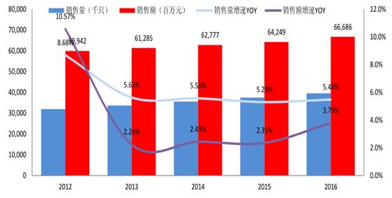 中国腕表市场销量及增速(数据来源:公开资料整理)