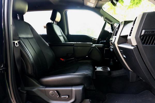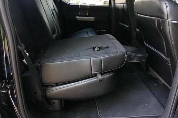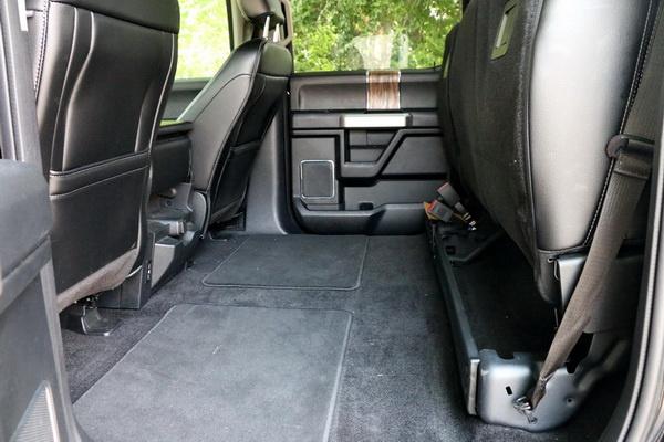 令人惊喜的是,外表看起来如此老大粗的大皮卡,在细节之处却是十分贴心。首先,座椅的设计就很巧妙。前排的座椅采用了比较少见的三座布局(比LARIAT高的版本为两座),中间的座椅放倒后又可以变成中央扶手,提供两个杯座和一个储物格,加上中间座椅下方的杯座,前排共有4个杯座,美国人非常喜欢喝的超大杯的可乐,拿到车里也有足够的地方放。不仅如此,这个座椅连同坐垫一起翻起来后,下方还藏着一个储物格,适合放一些隐私物品。