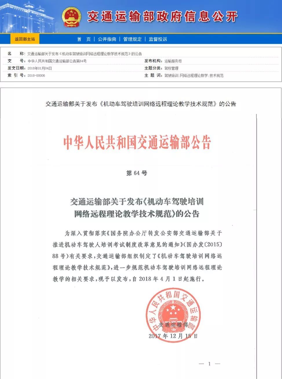 为交通运输部发布的正式公告