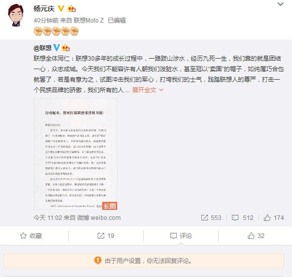 最后三位高管号召联想员工积极行动起来,万众一心,同仇敌忾,打赢这场联想声誉保卫战!