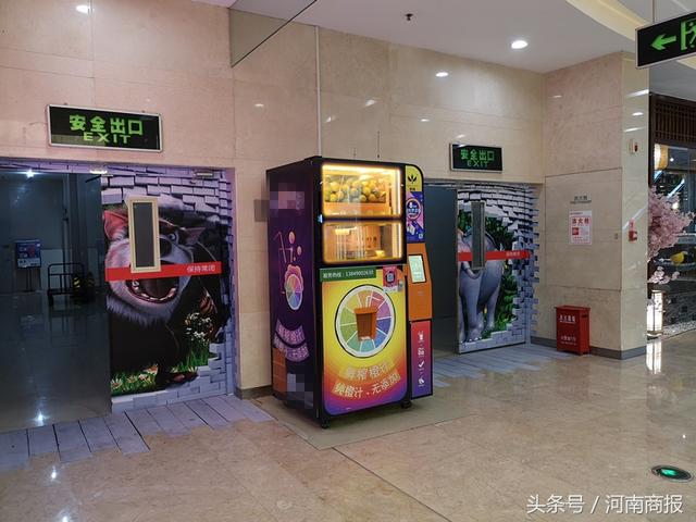 近日,郑州市民严女士在锦艺城逛街时发现商场三楼里有一台自助榨汁机,机身标识为'鲜榨橙汁,纯橙汁,无添加”字样。严女士觉得奇怪的是,仅在商场三楼,围绕着自助榨汁机就有三四家网红茶饮店,会有人用这种机子购买橙汁吗?