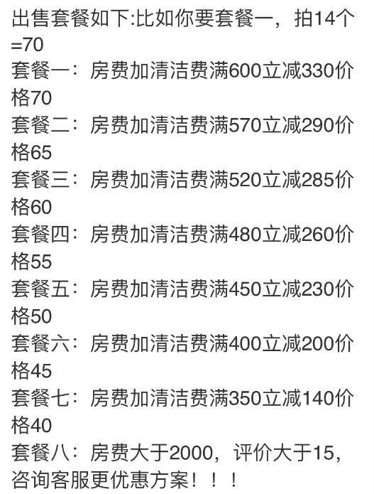 第二种如果你不是Airbnb的新用户,可以在淘宝搜索“爱彼迎优惠券”,有商家在卖带优惠券的账号,有不同的优惠价格,用他们的账号和教程下单可以享受下面的这种优惠。