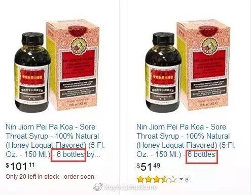 报道称: 调查发现,300毫升的川贝枇杷膏在纽约曼哈顿唐人街一些药店的售价为6美元,而在沃尔玛的在线销售平台价格为13.29美元,在亚马逊网站上价格为13.99美元,虽然有的高于国内的售价,但并非涨得离谱。而一些文章截图上显示的50-100美元报价,实际上为3瓶装或150毫升的6瓶装,并非单瓶的价格。