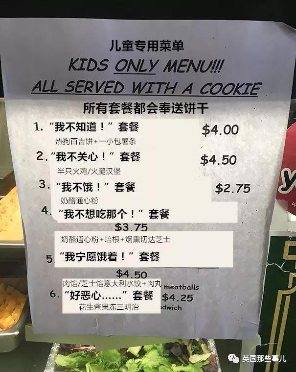 当地一家三明治店的儿童菜单……