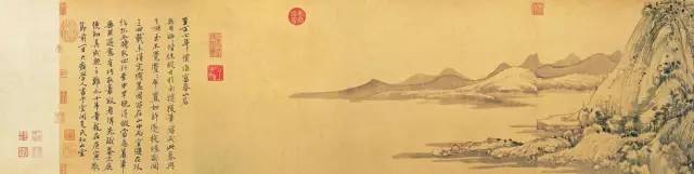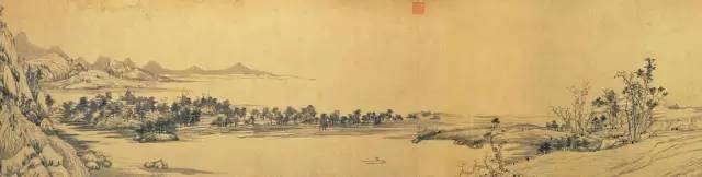 黄公望,快雪时晴图卷局部,纸本设色,北京故宫博物院藏。