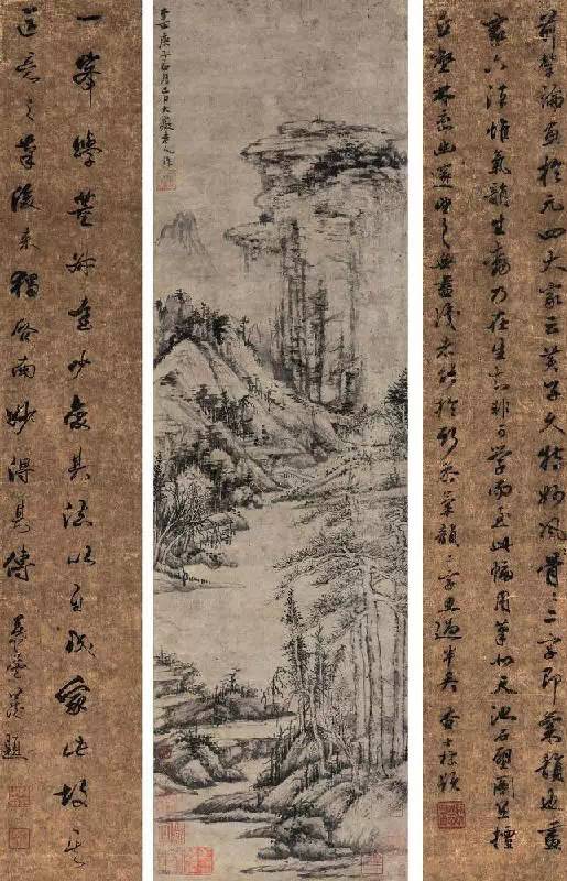 33、山水之作,昉自汉唐,古笔遗墨,不复多见。米南宫评品称董北苑无半点李成、范宽俗气,一片江南景也。厥后僧巨然、陆道士皆宗其法,陆笔罕见,然笔往往有之,亦有逼于董者。其有学于然者曰:“江贯道用墨轻淡匀洁,林木树叶,排列珠琲,宋人亦珍之,视然则大有径庭矣。”作山水者,必以董为师法,如吟诗之学杜也。