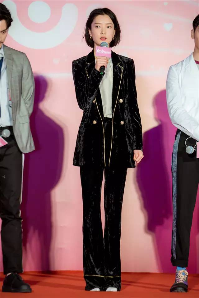同样是套装,唐嫣穿出的是酷酷的慵懒感。