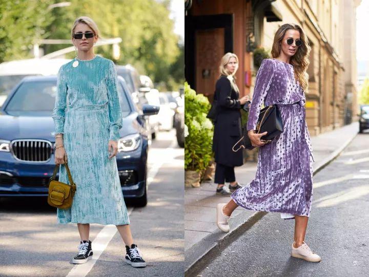 丝绒的那股复古慵懒又不失优雅的小调调非常独特,睡衣风的吊带裙、压褶的连衣裙、优雅的百褶裙,性感、低调、优雅又带着点奢华。