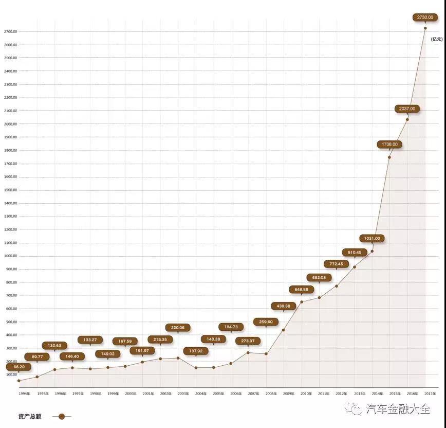 2017年上汽财务汽车金融零售放款84.7万台,总资产超2700亿。