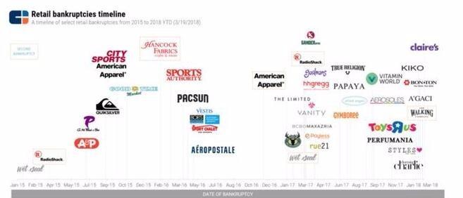 CBInsights总结的美国零售业破产时间线