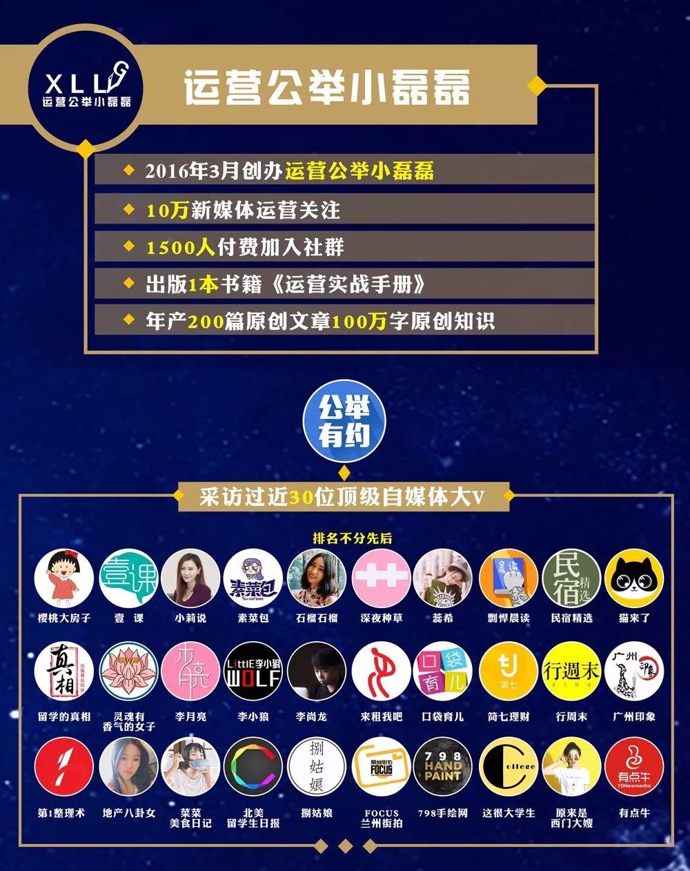 2016年3月份,他从待了四年的创业公司辞职,全职做自己的公众号“运营公举小磊磊”,目前全平台有近10万名运营关注。