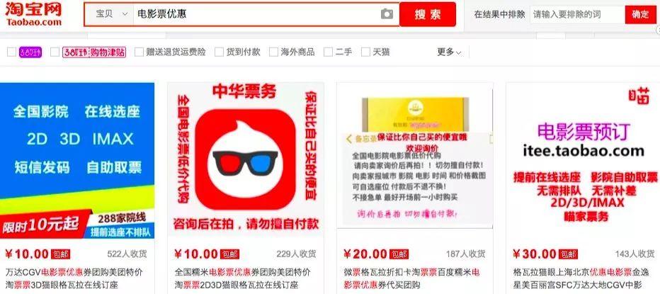 如果平台没啥优惠的话,大家可以在淘宝上搜索“电影票优惠”,像万达、CGV各种全国连锁的影院都可以优惠,把你想买票的时间和地点告诉店家,他可以每张便宜5-10块钱帮你订票,然后把二维码发给你,你直接去电影院取票就可以了。