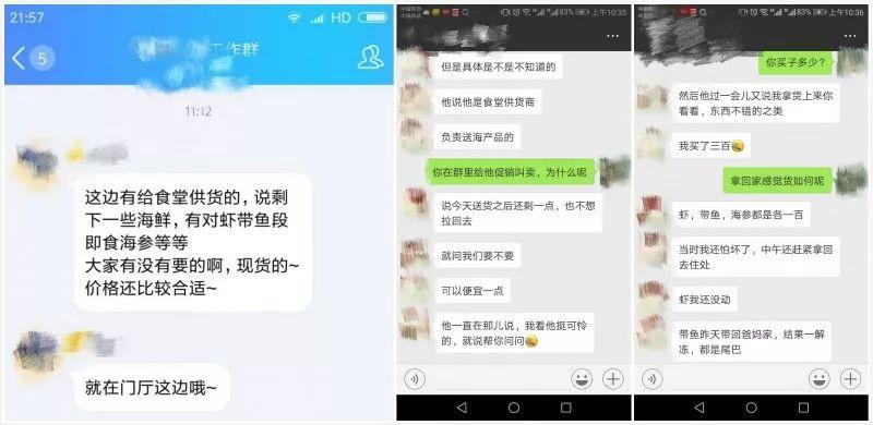 物业负责人介绍:他们可能自称是送水的,收报纸的,甚至是给食堂送货的。他们可能会说手头有少量没有卖出去的海鲜,将以低于市场的价格进行处理,而有了单位员工食堂的信用背书,可能很多人都会心动。