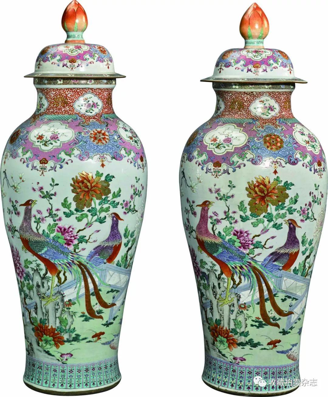 其收藏象征着传统西方中国艺术收藏的典型鉴赏品味。本次焦点拍品为一对清乾隆粉彩锦堂富贵图大盖瓶,属英格兰威尔特郡放山居旧藏,1965年由 Rt. Hon. Margadale of Islay 勋爵,T.D., J.P., D.L. 售出,最终以27.5万美元成交。