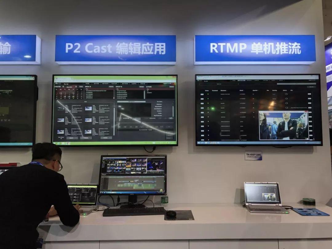 P2CAST区域可以说是此次松下展台最受关注的展区,集中展示了中国用户熟悉的P2HD ENG设备,以及基于P2Cast云平台不断更新的新工作流程。P2Cast与大洋融云平台强强联合: P2HD 摄录一体机拍摄的素材上传云平台,在大洋非编素材库立现,时间线即编,完成的工程文件传回摄像机,又将相应高码传回非编,这给客户带来了超级便捷的工作体验。应对融媒体需求,松下手持机AJ-PX298又出新招,机身直出RTMP视频流,直接对应各大直播平台,画质稳,延时小。大洋大观直播平台更是直接可在管理平台设置分配控制AJ-PX298的推流,现场的演示效果得到了用户的一致认可。