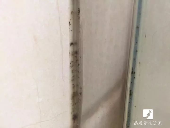 沐浴房用久之后,与墙连接用胶粘上的地方,也开始变黑。