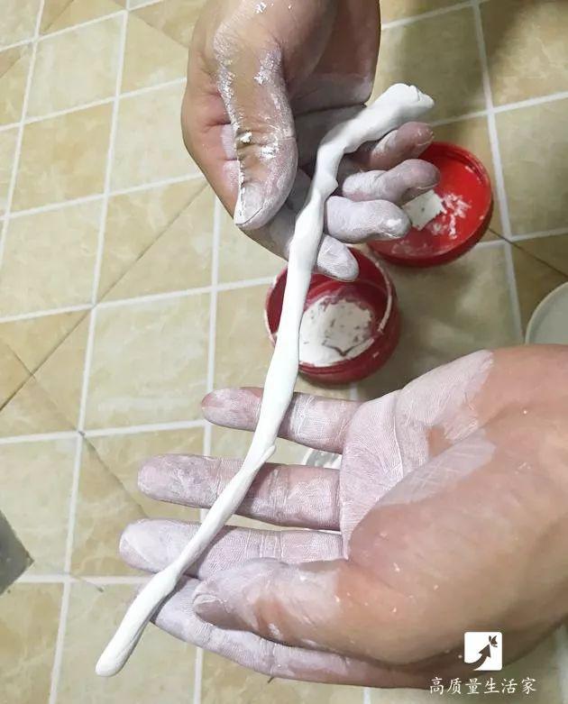 如果选用塑钢泥,自己动手就可以完成,就好象小孩玩泥巴或搓面团一样简单,不需要任何工具,做完后只需用清水就能将一切清理干净。