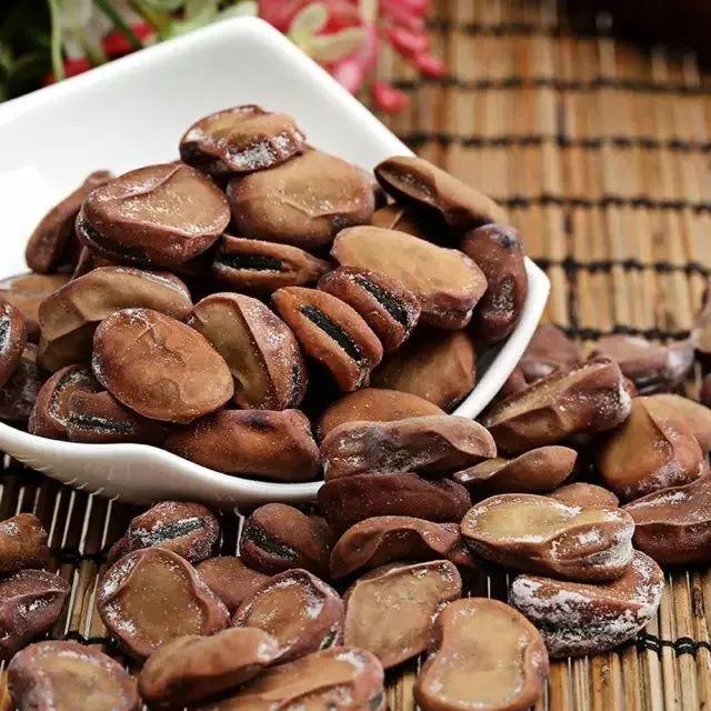 这种零食,好就好在很耐吃。并不像现在的薯片、巧克力、虾条,一把放在嘴里很快就吃完了,尤其小朋友,一颗五香豆拿在手里,先是好奇那白色的霜,用舌头去舔一舔,霜沾上水,白色便消失了,咸味还在;然后咬外面那层皮,咬开皮,乳白色的豆子显露出来;心急的一口吃掉,想再吃慢一点的便仔细把皮都啃完,两瓣豆瓣分开放进嘴里。