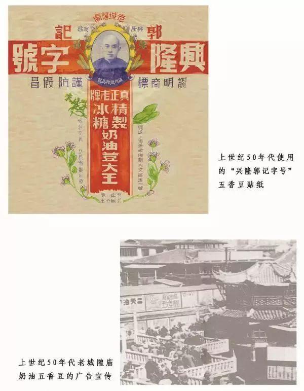 1939年,由于生意兴隆,郭瀛州将原来的“雷云轩”烟杂店改名为“兴隆郭记号”,从此“老城隍庙冰糖奶油豆大王”便名声大噪。沪上名人雅士,也常以品尝奶油五香豆为乐,外地坤伶名角常遣人专程来城隍庙购买五香豆。