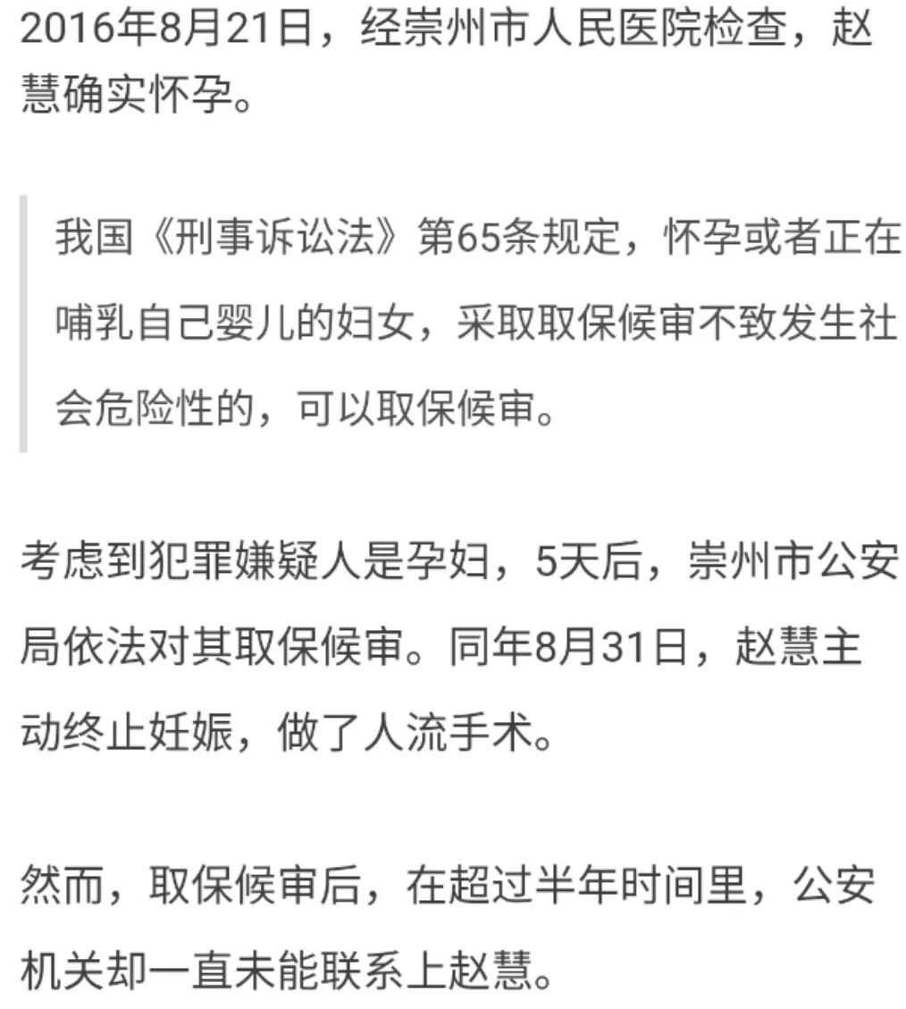 没想到,赵慧告诉办案人员,自己怀孕了。
