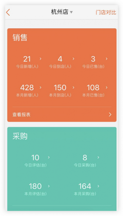 你从这个系统里还能看到一些其他维度的东西,比如说这家店使用SaaS的能力怎么样,店里人员有多少,销售顾问几个,各自能力怎么样,包括我们地推去拜访的次数、做了哪些工作,这些信息都是数字化的,都显示在系统上。