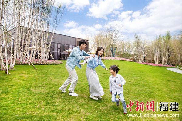 泰禾上海大城小院一家人在白桦林旁嬉戏