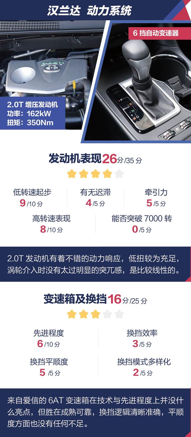 汉兰达最大的优势还是它超强的空间实用性,除此之外,其它各方面的表现它也没有明显不足,做出一台没有明显缺点的车并不容易,这也是汉兰达长期以来都能稳居销量榜首的原因。有关汉兰达更详细的测试成绩,请关注我们的超级评测报告吧!
