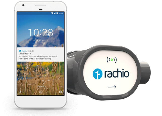 作为该公司第三代控制器的智能伴侣,这款无线流量计(Rachio Wireless Flow Meter)可以在检测到管路泄露的时候,提醒用户检查并关闭阀门。