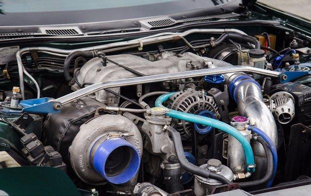 最初的酒红色漆面看起来有些许的慵懒 ,Aurick决定将车子改为宝马专属的深绿色。新的颜色也为车子注入了新的活力。随后,车子又在前杠装上了一套LED灯组,让整台车看起来精神了许多。你可能觉得外观上这台车被驯服的很温顺,但打开引擎盖,你会发现,他装配了几乎所有合适的零件。为了安全起见,13B-REW使用了全新的2mm密封件和超大主螺栓进行了重固定。双涡轮增压系统随后被舍弃,转而使用博格华纳S360的定制单涡轮增压设备,从而释放了很多发动机舱内空间。