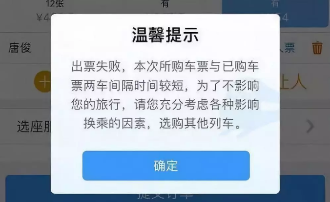 记者从中国铁路客户服务中心12306获悉,9月22日起,通过网络、电话、自动售票机、人工窗口等方法购买同站换乘的车票时,两张车票需间隔10分钟以上;购买不同车站换乘的车票时,两张车票间隔需在40分钟以上,如果购票间隔少于规定时间,系统会弹出出票失败的提示。