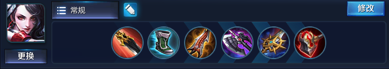 后期可以将打野刀更换为复活甲/*刀名**,大后期可以将暗影战斧更换为破军,提高收割能力。但不推荐更换鞋子,阿轲非常需要韧性鞋的减少控制效果和提供的移速。