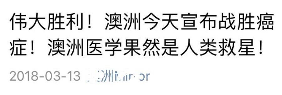 2:标题有“澳洲攻克癌症”关键词,基本都是伪科学。这篇文章就是,但大家还是上当了。