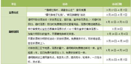 3月中旬至清明,部分公墓将在非祭扫高峰日组织开展系列公益安葬和人文纪念活动,履行社会责任,展示人文关怀。