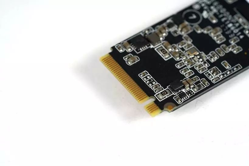 可以看到,它的右侧金手指只有4根,是符合M-key针脚定义的。所以这是一张支持M-key协议的固态硬盘。但受限本身产品定价以及规格速度限制,它的上限也依然只有X2,也就是10GB/s是这块SSD的上限。