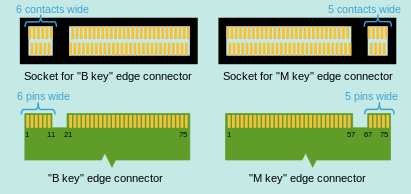 这两者有什么区别呢?首先是针脚定义的不同,B-key可以看到下图,是6根金手指,M-key的话只有5根金手指。