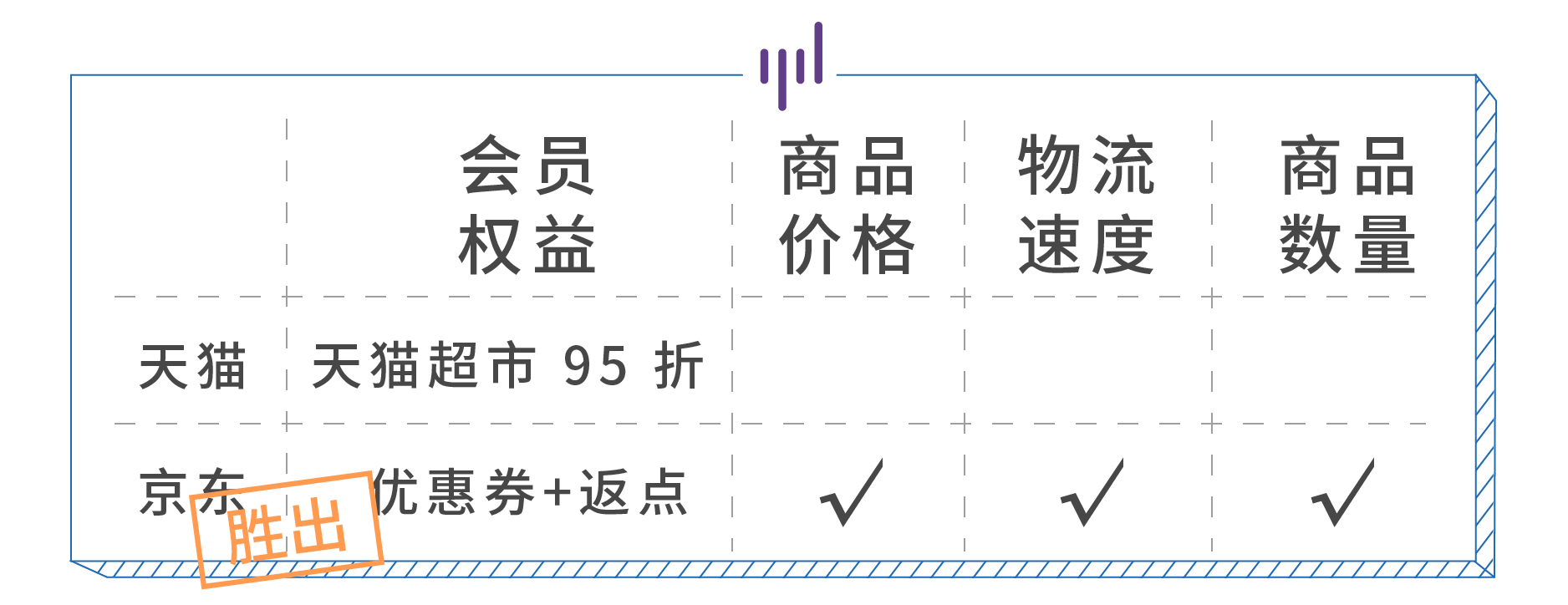 现在你可能因为我们的忽(分)悠(析),买下了两个会员,但是不知道怎么用更省钱。或者你依然还在为买哪个而纠结。那就来具体情况具体分析一下,看看各个品类的商品在哪边买更有优势。