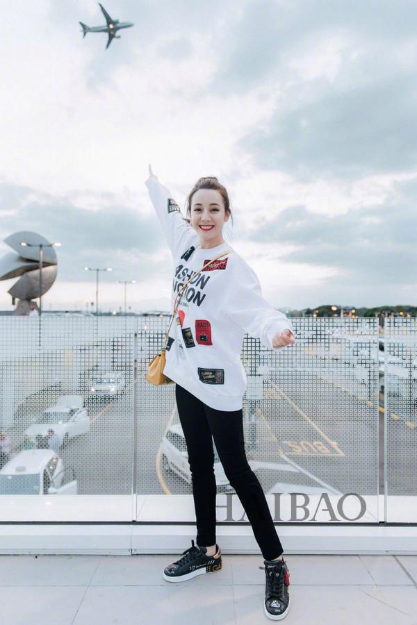 图片延伸阅读:迪丽热巴Dolce&Gabbana米兰时装周机场街拍