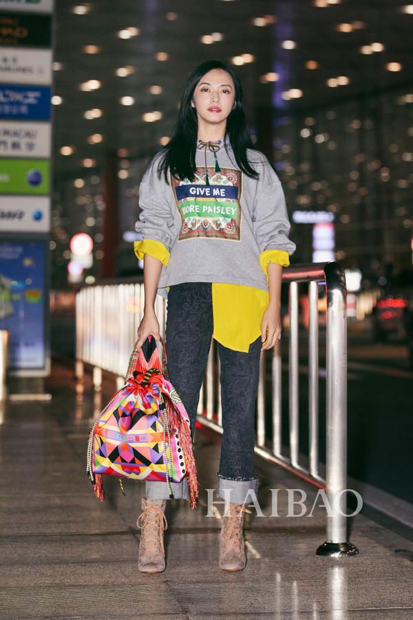 图片延伸阅读:明星街拍华语明星街拍手袋短裤MarniDiesel印花帽衫(卫衣)Stuart Weitzman机场街拍中筒靴Y/Project马思纯