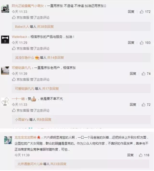 京东客服官博于3月14日中午发的回应声明
