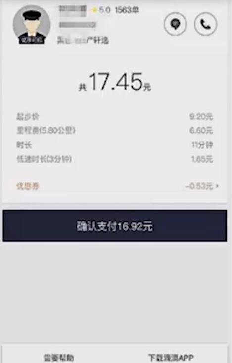 另外,订单截图显示,该司机接过1000多单,评分为5.0好评。