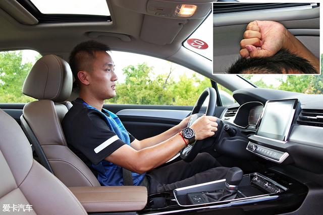 体验者身高179cm,坐进前排,将座椅调节至最低,头部空间剩余一拳。