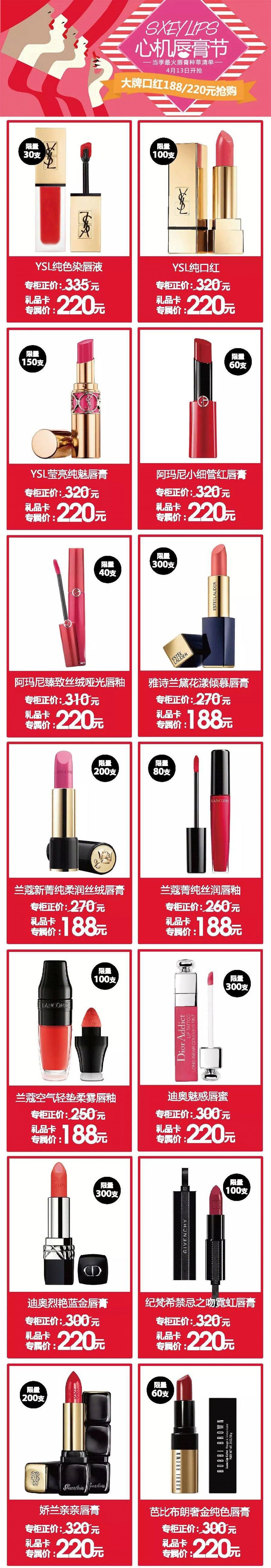 口红188/220元秒杀抢购