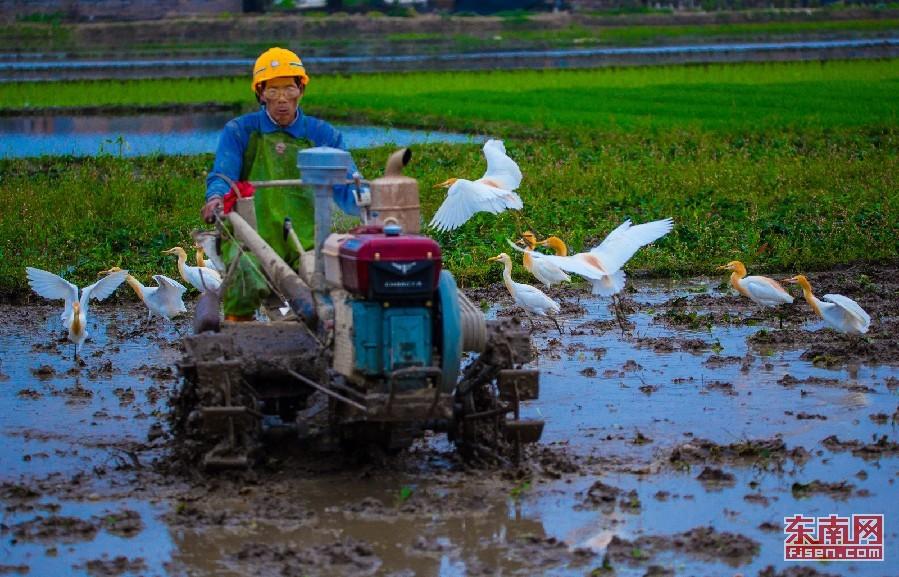 34岁的钟丽钦是诏安县西潭镇美营村的农机大户。清明期间,他开着旋耕机,为西潭镇上陈村陈金荣一家,完成了7亩地的耕地作业。一个月后,钟丽钦还将为这块地机插秧苗。