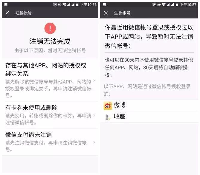 从注销过程遇到的前提条件和重要提醒来看,要完成微信账号的注销工作,难点是要解除微信与其他App、网站的授权登陆或者绑定的关系,用户可能需要逐个登录授权的App和网站,解除授权登录。