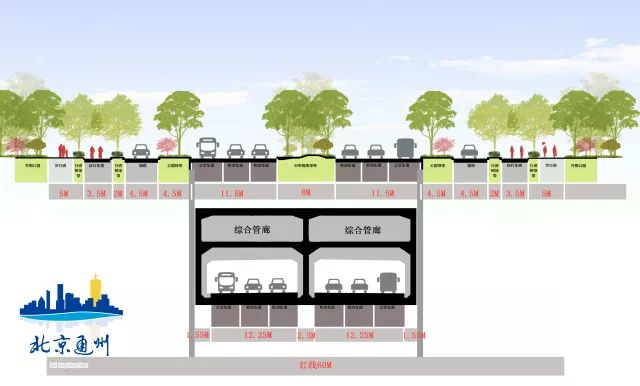 为保证中心城与城市副中心快速、安全、方便的交通联系,广渠路东延自怡乐中路以东至芙蓉路设置地下道路,全长6.5公里,将有效提升通州区域路网交通承载能力。