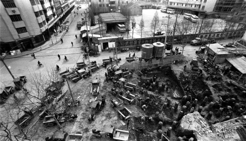 第一张图是当年木桥浜路中国银行大楼修建时的场景