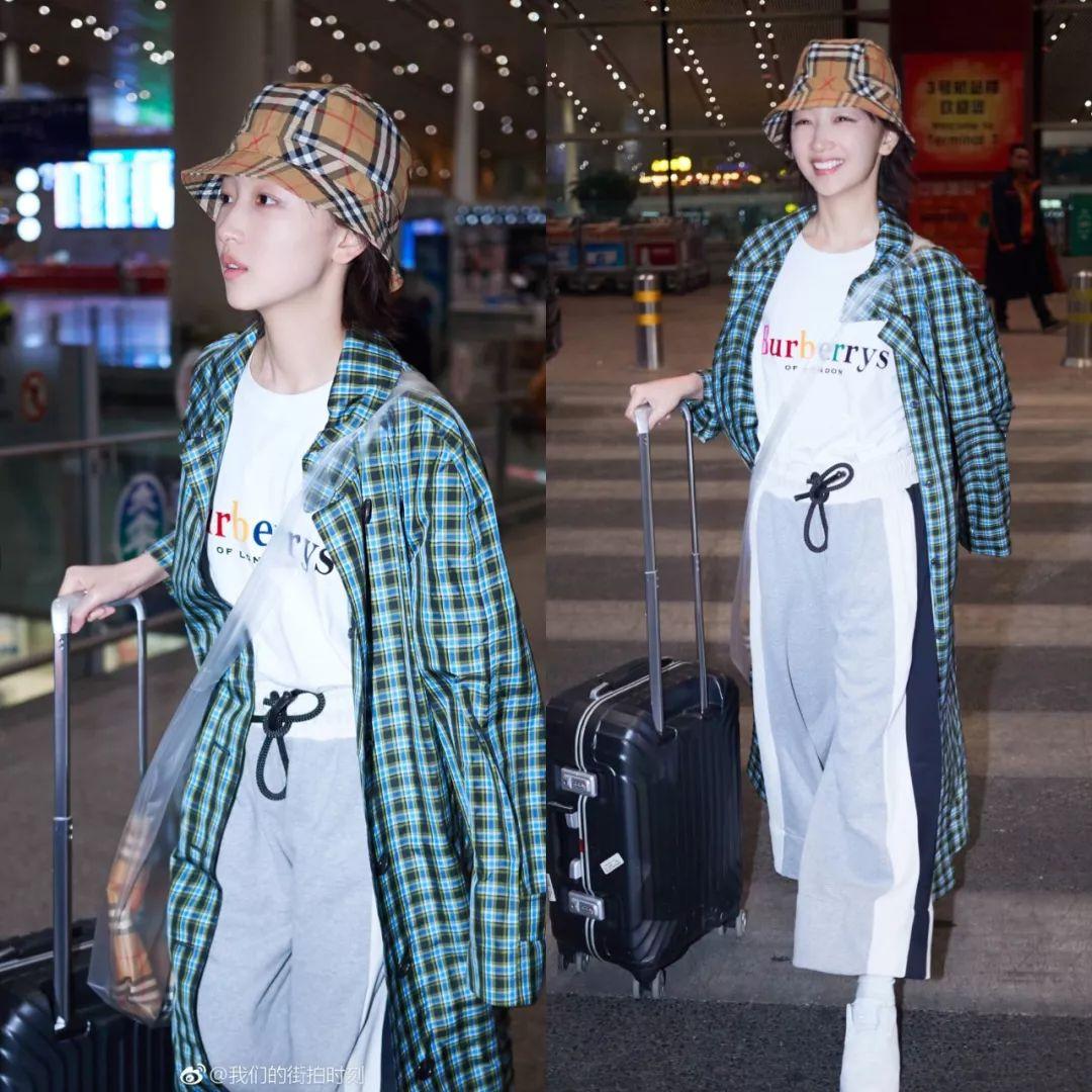 周冬雨:一身Burberry格纹大衣搭配阔腿裤,“冬叔”一贯的清爽率性,春风十里不如你~