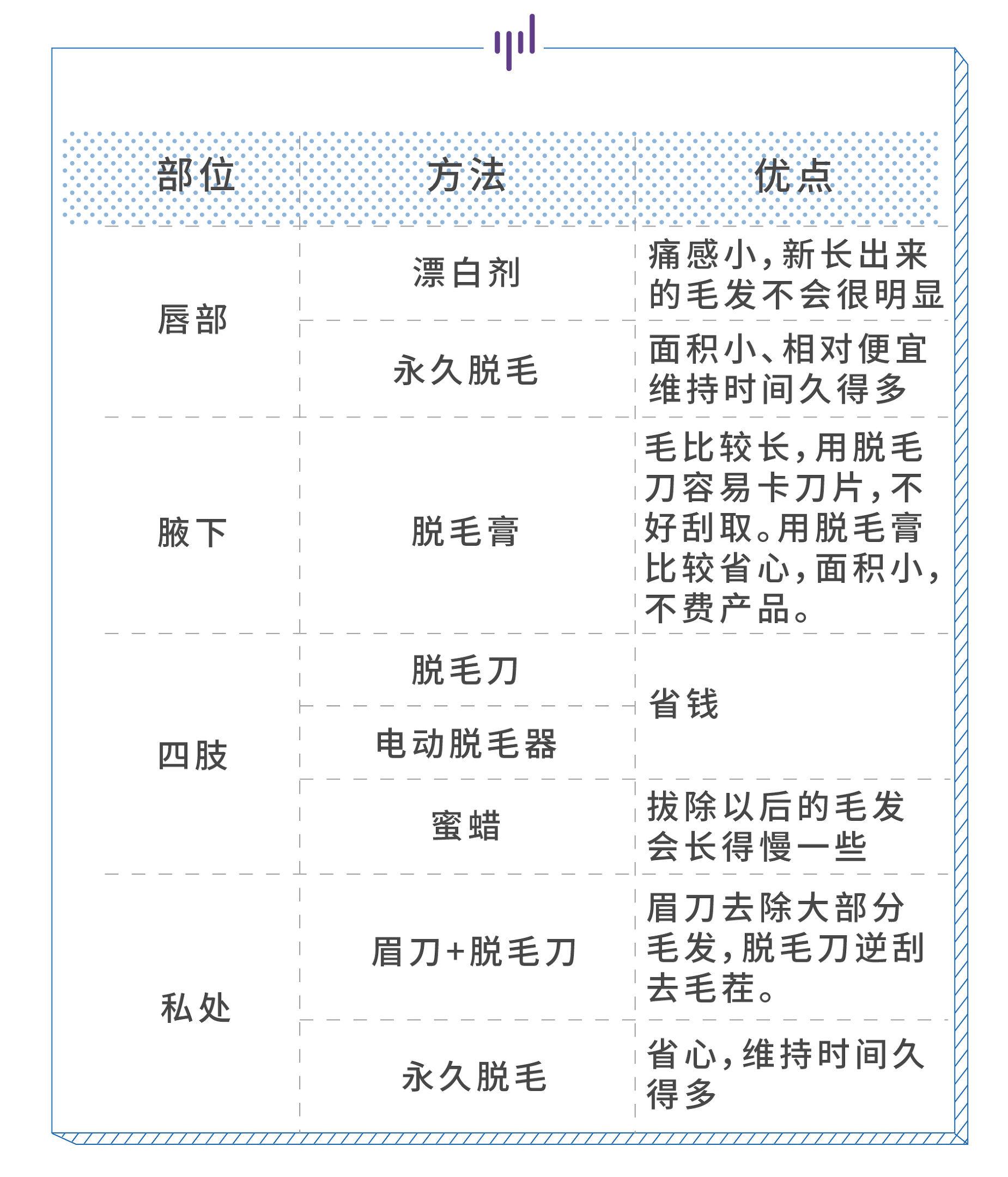 这么多产品和方法,到底哪种对我合适啊!别着急,这篇里,我会分部位挨个介绍最优的脱毛方案和产品给你。