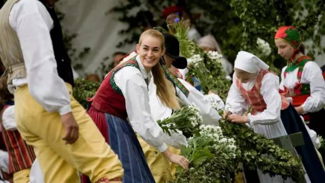 仲夏节是瑞典最大的节日之一,因为仲夏夜是要在乡村进行的,所以几乎所有的瑞典人都会提前离开城市,去往白桦树丛中迎接节日的到来。大家在广场的空地上竖起一根用花环桦树枝装饰的五月柱,在明朗的仲夏之夜,配合着小提琴和手风琴的表演,穿着民族服装的人们在柱子的四周跳着民族土风舞。